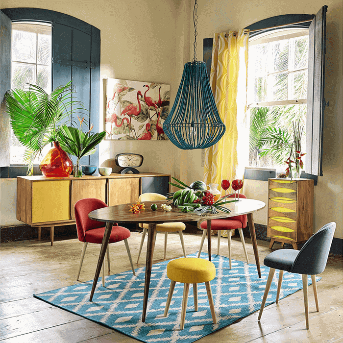 复古设计配上色彩丰富的椅子,来丰富整个空间,营造一种温暖明亮的气氛。
