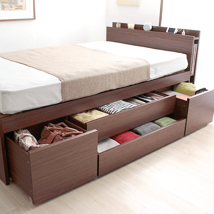 带有4种尺寸的抽屉,满能够足您各种收纳需求的一款床。