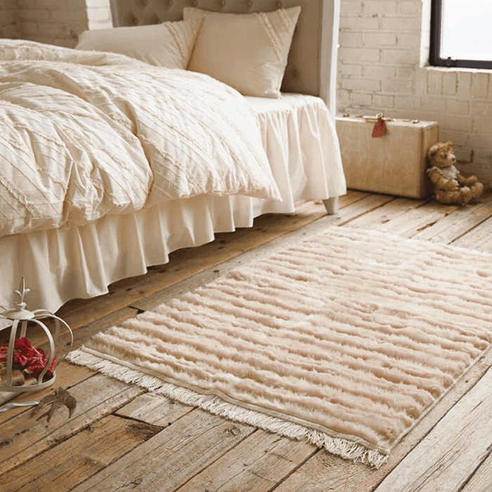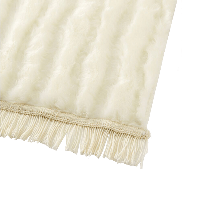 地毯表面是松软的皮毛,贴合肌肤舒适度极佳。地毯边缘是今年最流行的柔和的象牙白的流苏,古典与现代相结合。可折叠的设计,方便收纳。地毯做过防火处理,再也不用担心烟头掉在地毯上了。