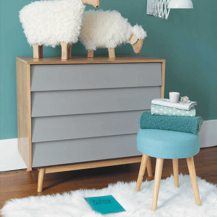 外观可爱的凳子,由木头和织物组成,坐感舒适的座面