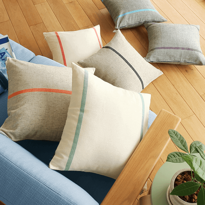 在素色的表面上引一条亮色调的条纹,既可以感受到素色材质的自然感,又能体会到鲜亮颜色的跳跃感。