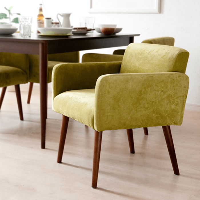 木脚配有脚垫,防滑,防刮伤地板。棉绒材质的面料,靠背设计科学,能够放松整个腰部。软包和实木的完美组合,让我们的餐厅更加的温馨协调。